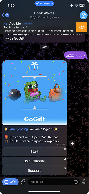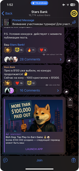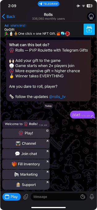 User acquisition powered by Telegram-native placements: channels, mini-apps & more